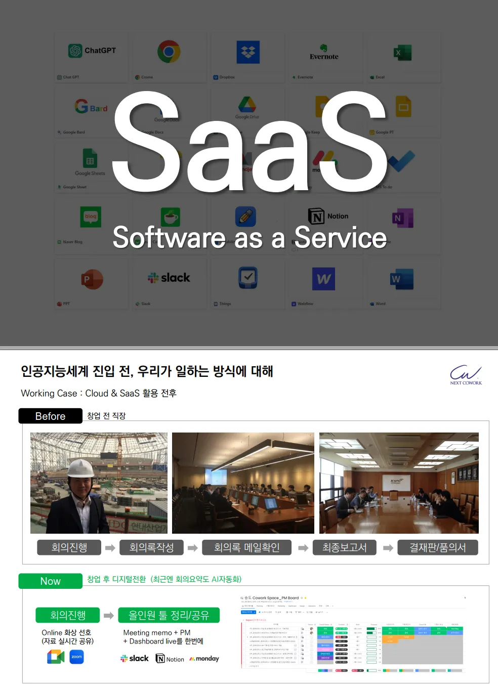 이종찬 대표는 1군 건설사의 신규사업팀 PM, 계열사 신규사업팀장을 거치며 다양한 대규모 프로젝트에 참여하였습니다. 직장생활 초기부터 스마트워크를 통해 업무생산성을 높이는 방법을 연구하며, 효율적이고 디지털친화적으로 일하는 방식을 탐구해왔습니다. 이 경험을 살려 공유오피스 <스페이스코웍>을 창업하였고, 사업초기부터 디지털 클라우드 시스템을 도입해 비즈니스 확장을 이끌어 왔습니다. 사업기획과 리서치 과정에서 디지털메모와 노션 등을 적극 활용하며, 이를 통해 얻은 생산성 향상과 아이디어 정리 비결을 많은 이들과 공유하고자 노력했습니다. Chat GPT가 출시된 후, 매일 생성형 AI를 적극 활용하며, 노하우를 축적하고 있습니다. 세미나, 강의, 코칭, CEO 경영자문 등을 통해 ‘일이 잘되는 방법’을 전파하고 있습니다.