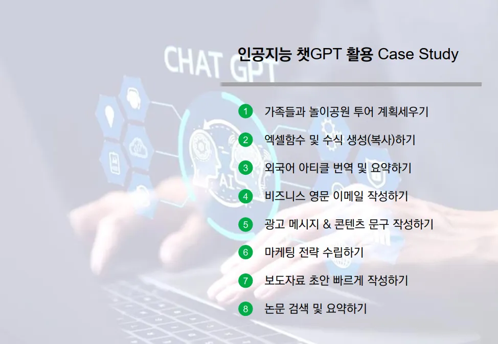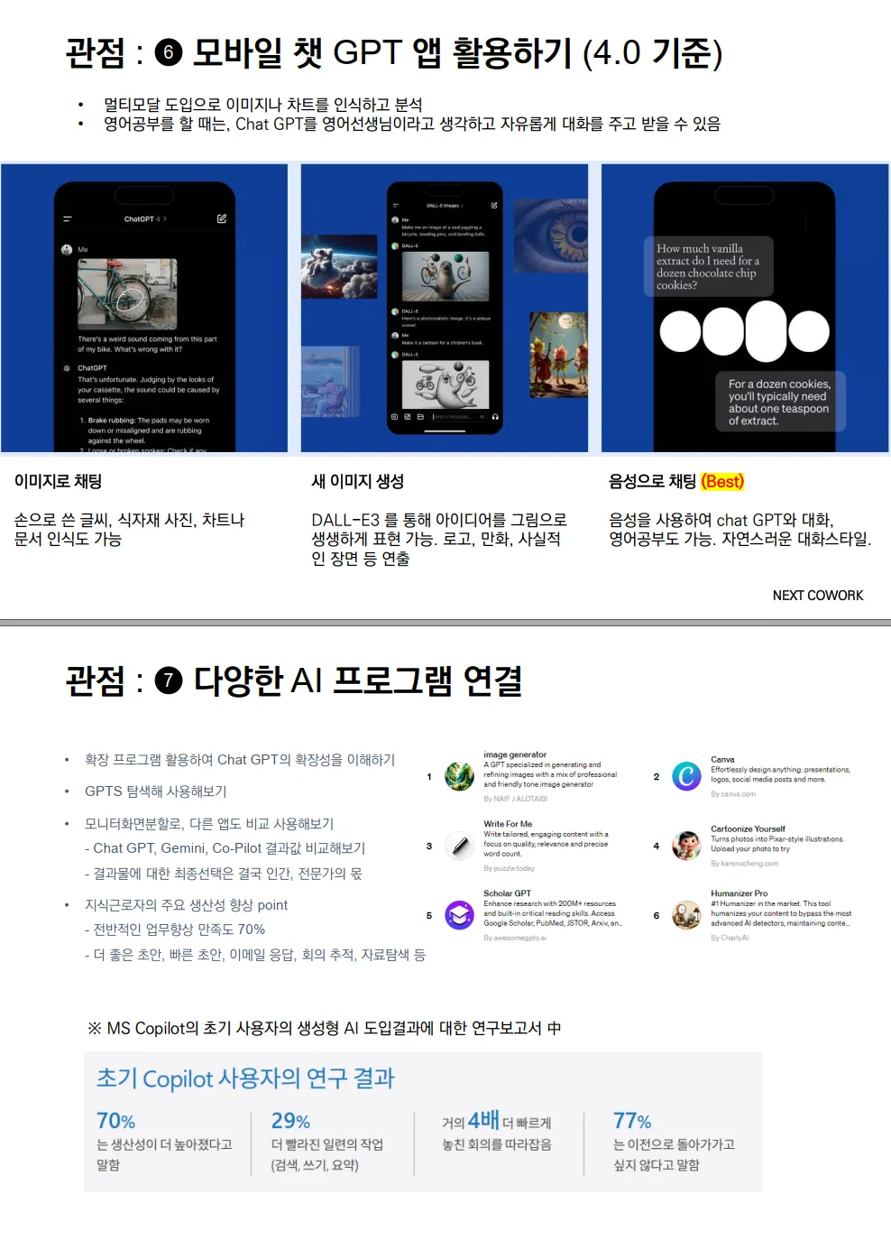 더 이상 ChatGPT는 단순한 채팅봇이 아닙니다. 기획부터 리서치, 프로젝트 관리, 글쓰기까지 - ChatGPT를 활용해 업무 전반의 생산성을 높이는 방법을 알려드립니다. 실전에서 바로 써먹을 수 있는 프롬프트 엔지니어링과 함께, 새로운 일하기 방식을 만나보세요.