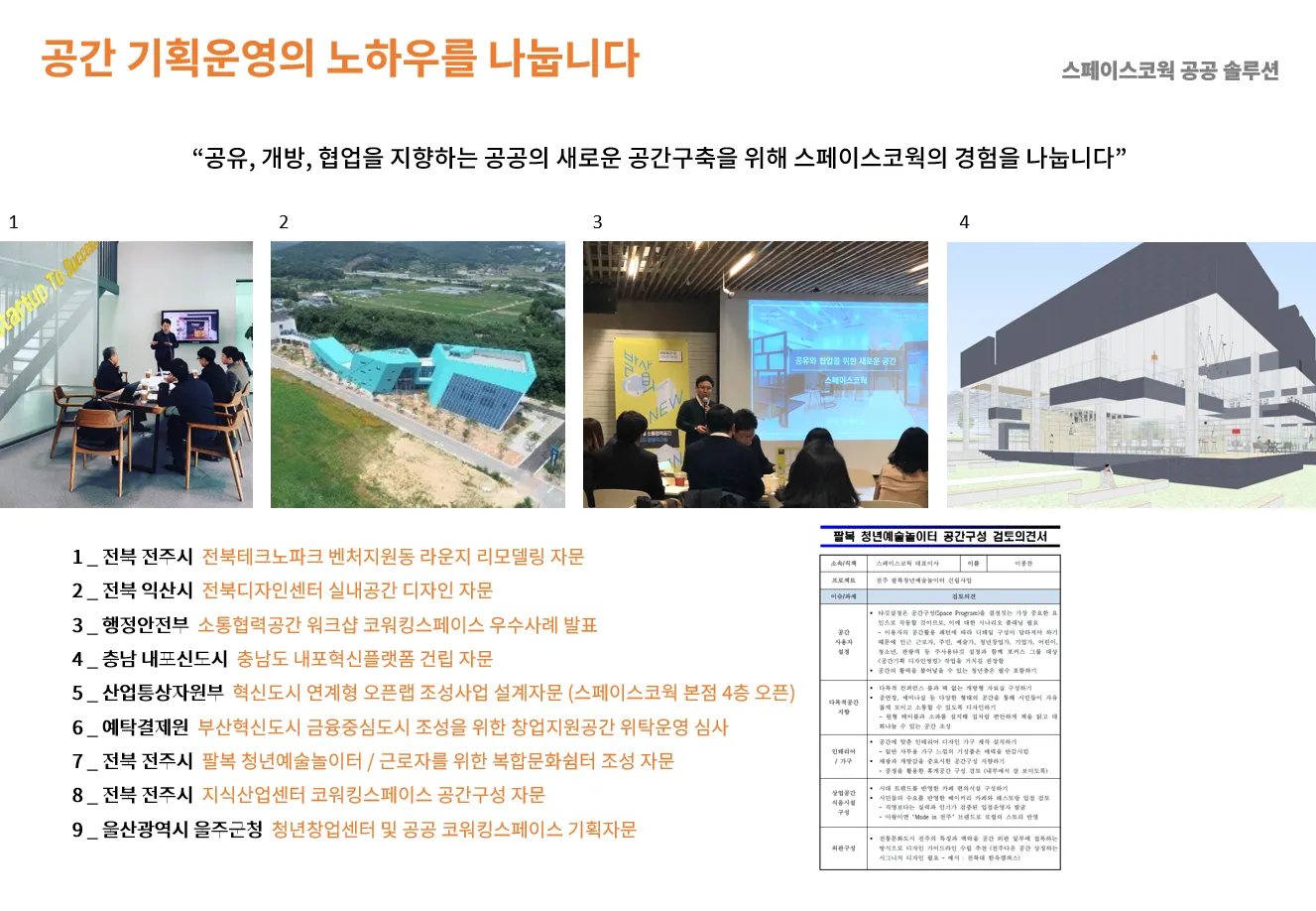 고려대, 아주대, 경북대, 전북대, 전주대, 전북경제통상진흥원, 창조경제혁신센터, 전북산학융합원, 지자체, 다양한 기업체, CEO자문코칭 등